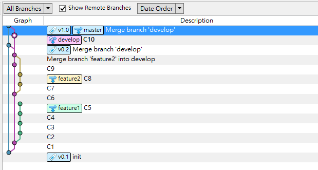 好啦!這樣就完成合併的動作了,來看一下分支圖: