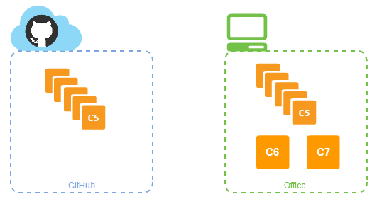 沒關係,別急!來看怎麼了,我們先來比較一下GitHub網站、家裡、辦公室儲存庫的版本: